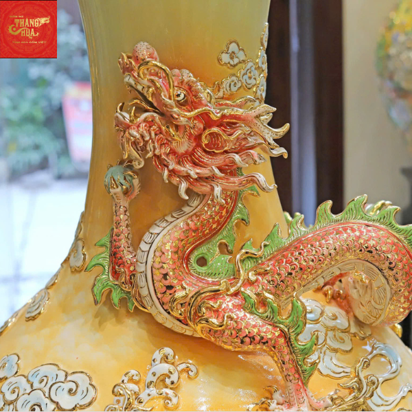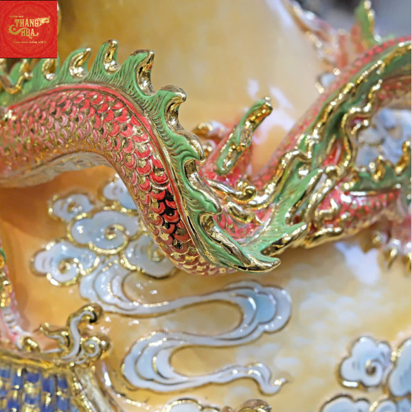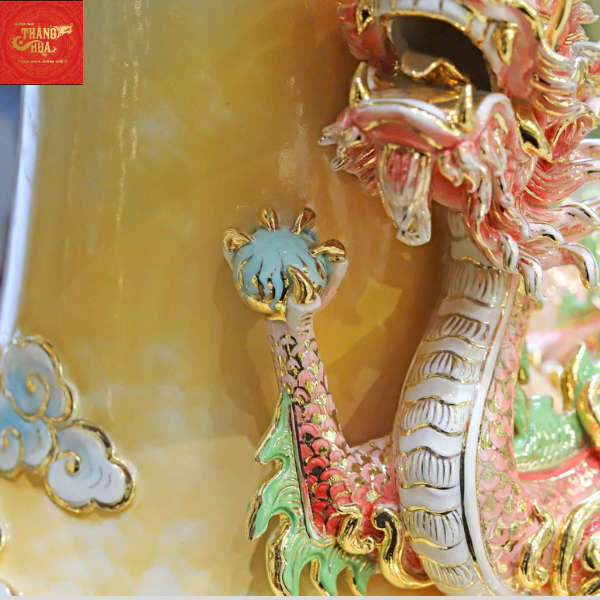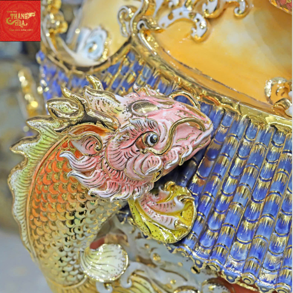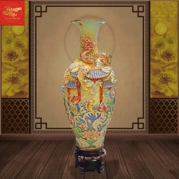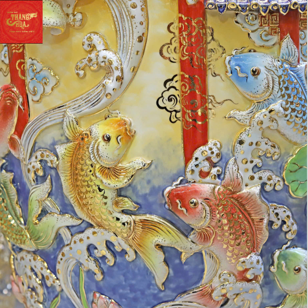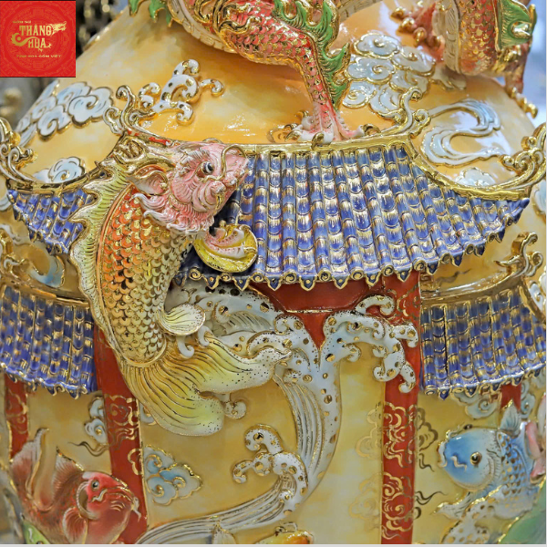 Bảo Bình Cá Chép Hóa Rồng Đắp Nổi Vẽ Vàng 1M10