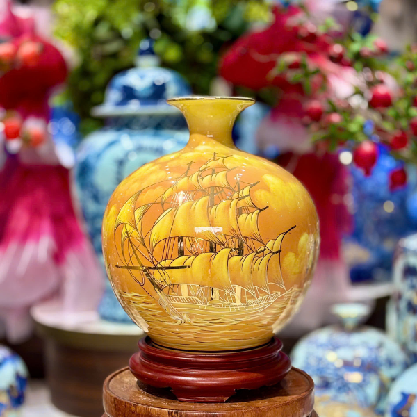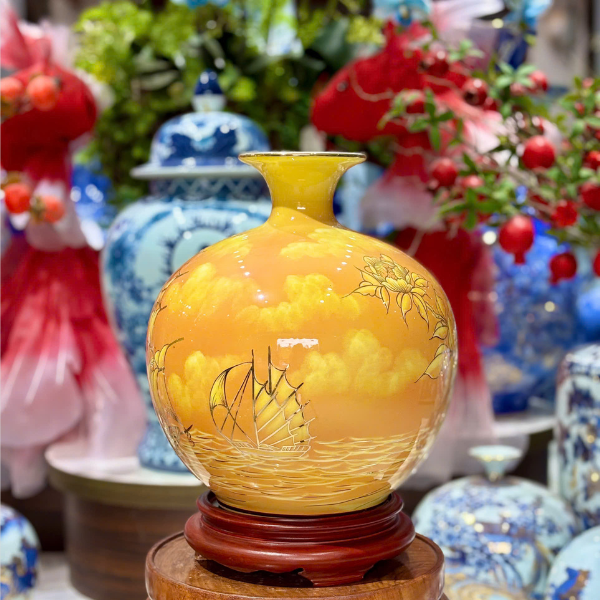 Bình Hút Lộc Thuận Buồm Xuôi gió Vẽ Vàng H30