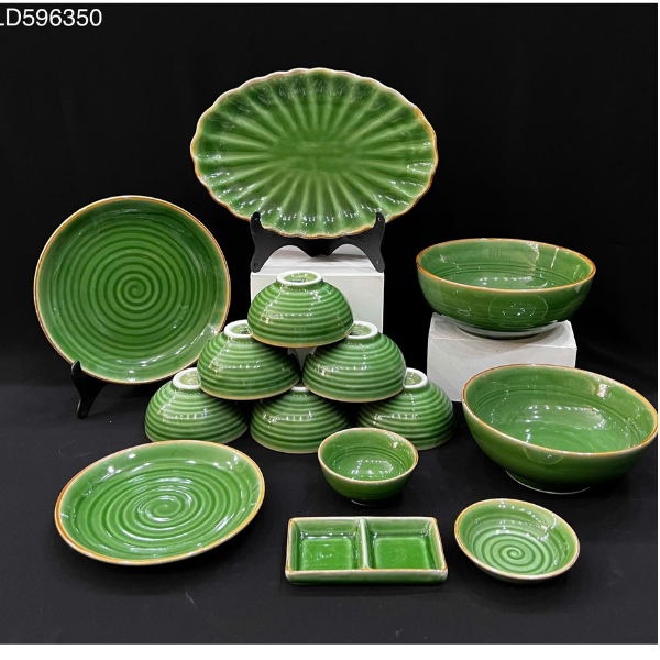 Bộ Đồ ăn men Lục Diệp Bát Tràng