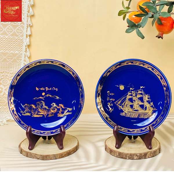 Đĩa Cảnh-Vẽ Vàng-Màu Xanh Coban Phi 20