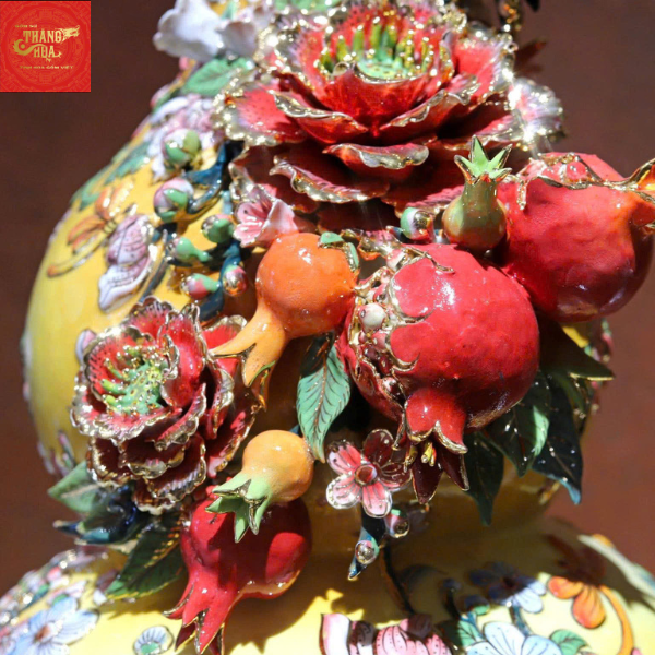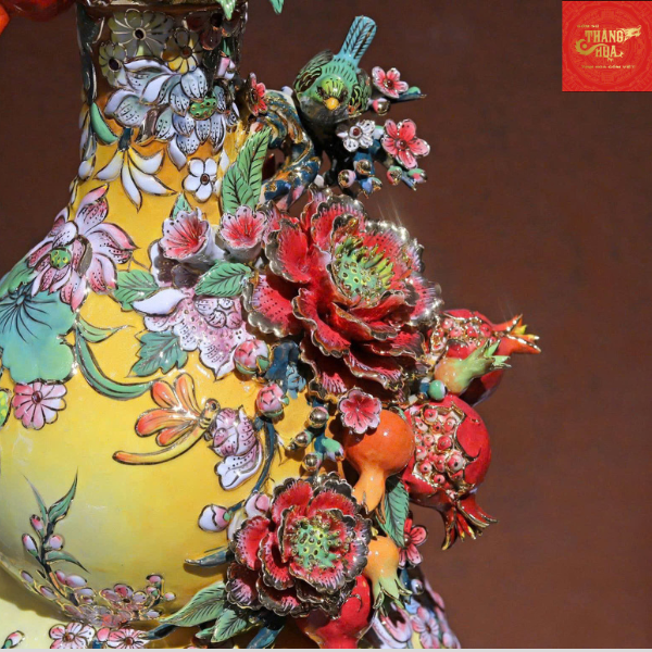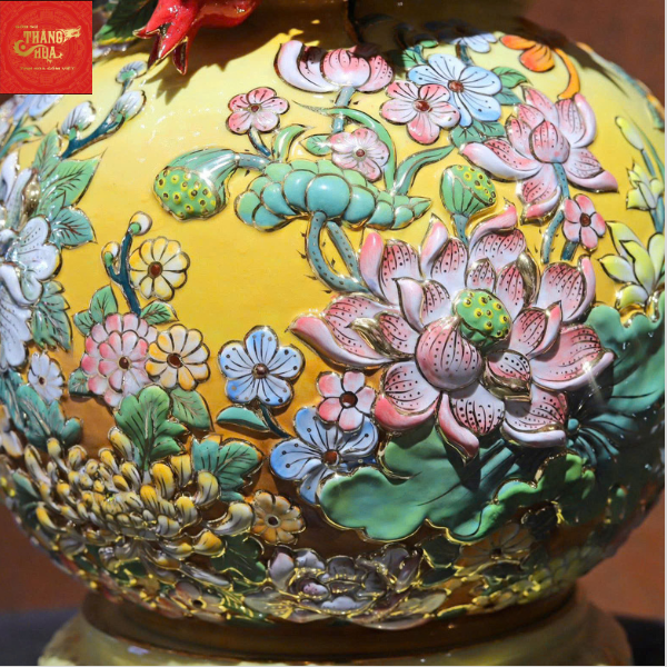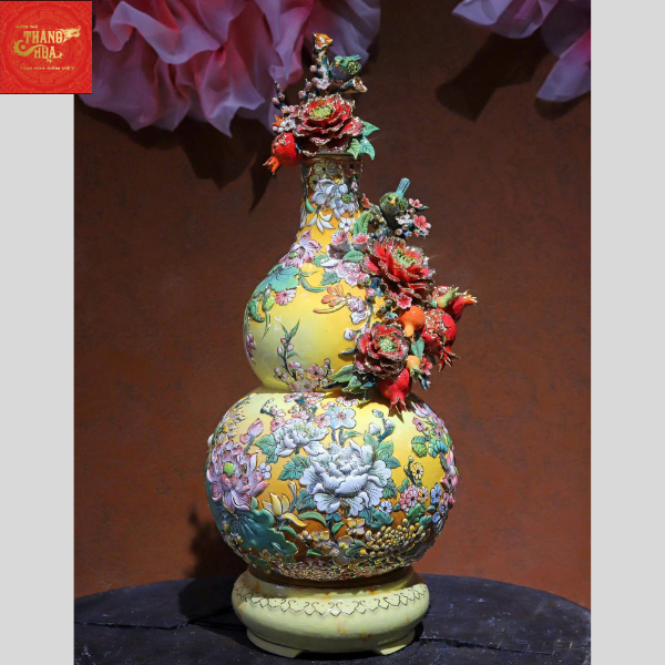 Hồ Lô Trăm Hoa Đua Nở Đắp Nổi Vẽ Vàng H55