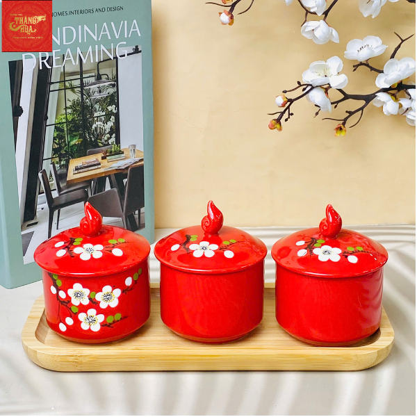 Hũ Mứt Tết Màu Đỏ Hoa Mai