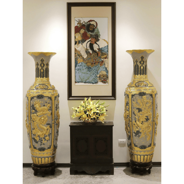 Lọ Lộc Bình Tứ Linh Men Rạn Đắp Nổi Dát Vàng H1M80