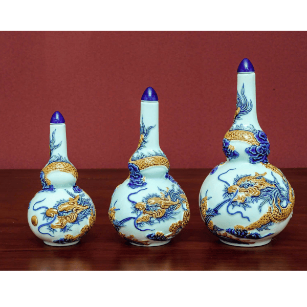 Nậm Rượu 2 Bầu Rồng Men Ngọc Đắp Nổi