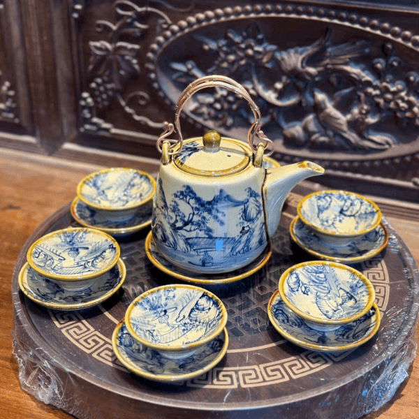 Ấm Chén dáng Ấm Vuông Vẽ Sơn Thủy