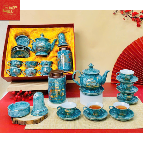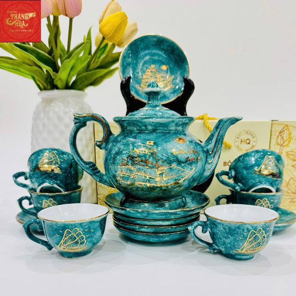 Ấm Chén Phú Qúy -Thuận Buồm Xuôi gió-Màu Vân Đá Xanh