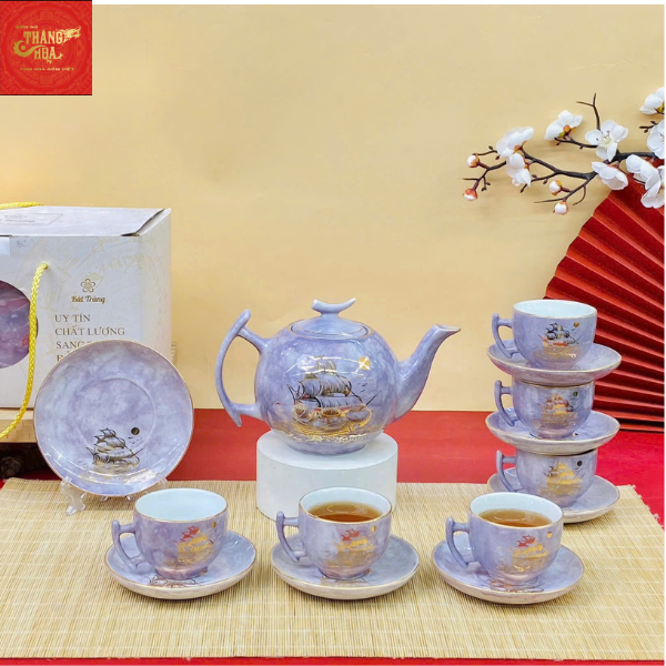 Ấm Chén Qủa Hồng -Thuận Buồm Xuôi gió-Màu Vân Đá tím