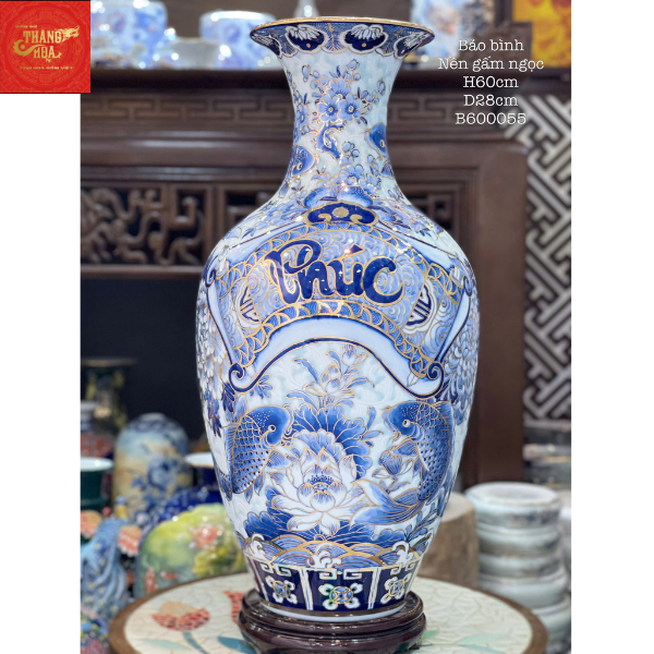 Bảo Bình Nền Gấm Ngọc Vẽ Vàng H60