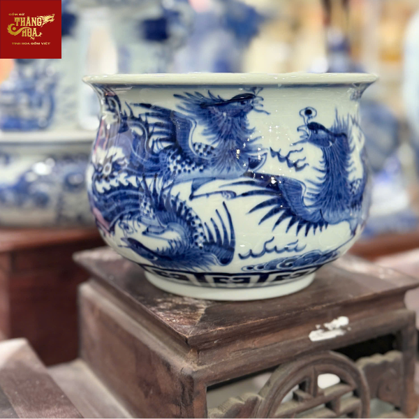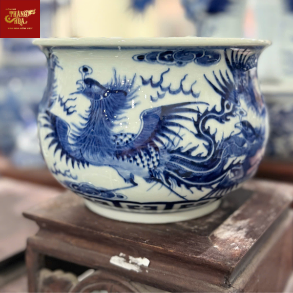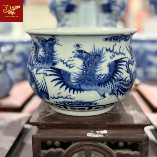 Bát Hương Vuốt Tay Dáng Lư-Cửu Phượng-Men Tràm Ngọc Nếp