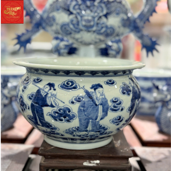 Bát Hương Vuốt Tay Dáng Lư-Bát Tiên-Men Tràm Ngọc Nếp
