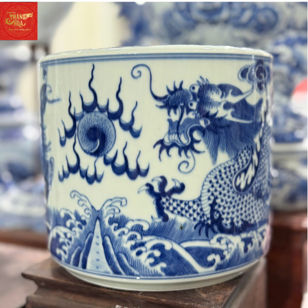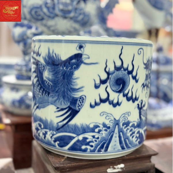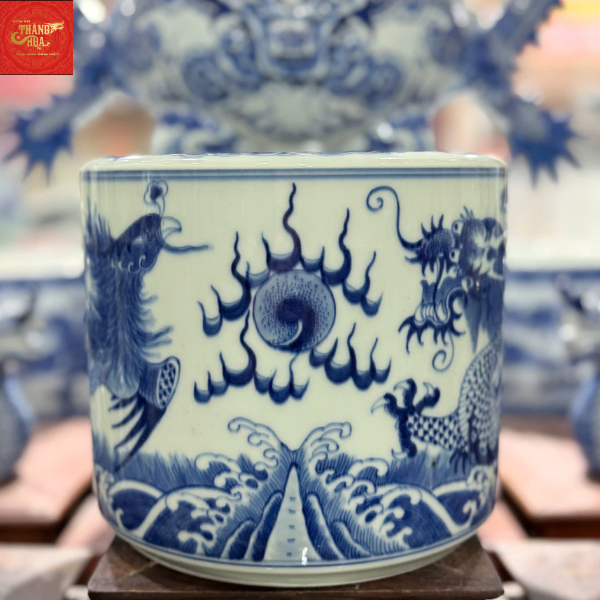 Bát Hương Vuốt Tay Dáng ống-Long Phụng Chầu Nguyệt-Men Tràm Ngọc Nếp