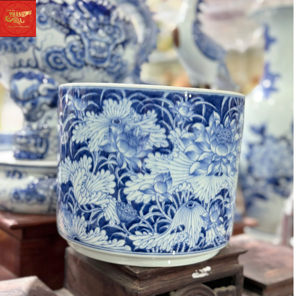 Bát Hương Vuốt Tay Dáng ống-Sen Phú Qúy-Men Tràm Ngọc Nếp