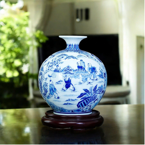 Bình Hút Lộc Tiểu Đồng Chăn Trâu Cắt Cỏ Men Lam H35
