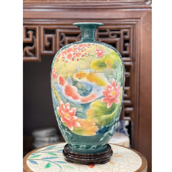 Bình Hút Lộc Dáng Cao Vẽ Sen Cá H50