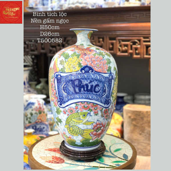 Bình Tích Lộc – Ngũ Ngư Chúc Phúc H50 Nền Gấm Ngọc