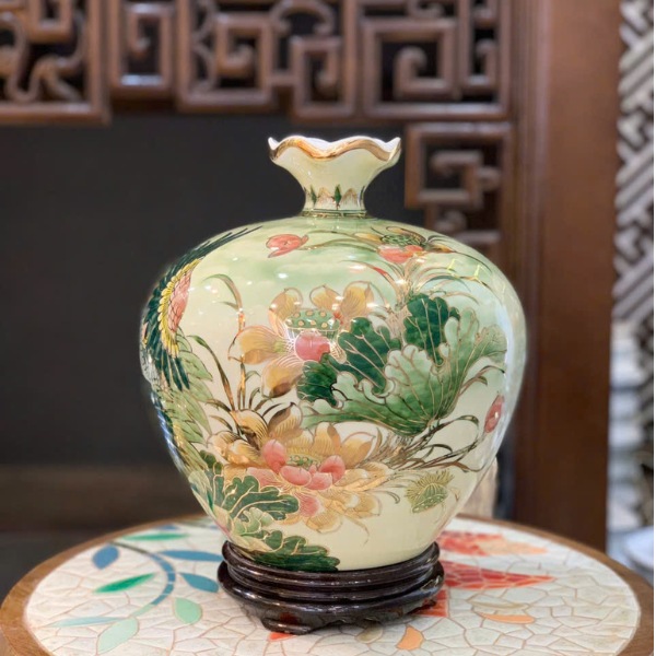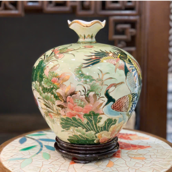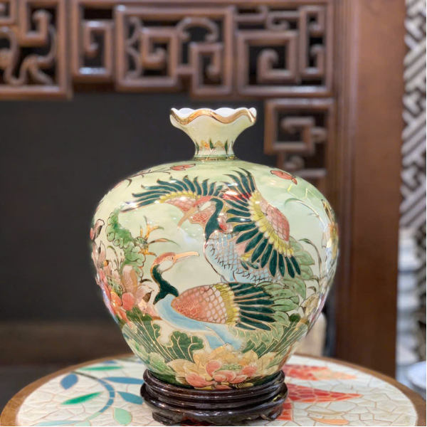 Bình Hút Lộc Sen Hạc Vẽ Vàng H35
