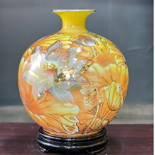Bình Hút Lộc Sen Phú Qúy Vẽ Vàng H30
