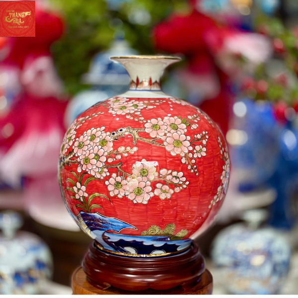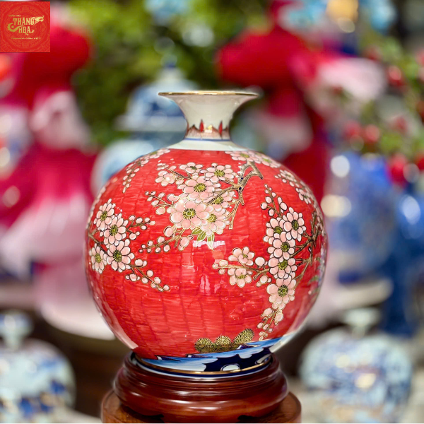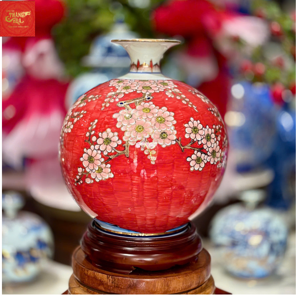 Bình Hút Lộc Băng Mai Đỏ- Vẽ Vàng H35