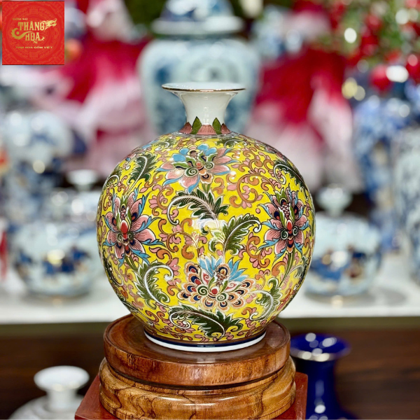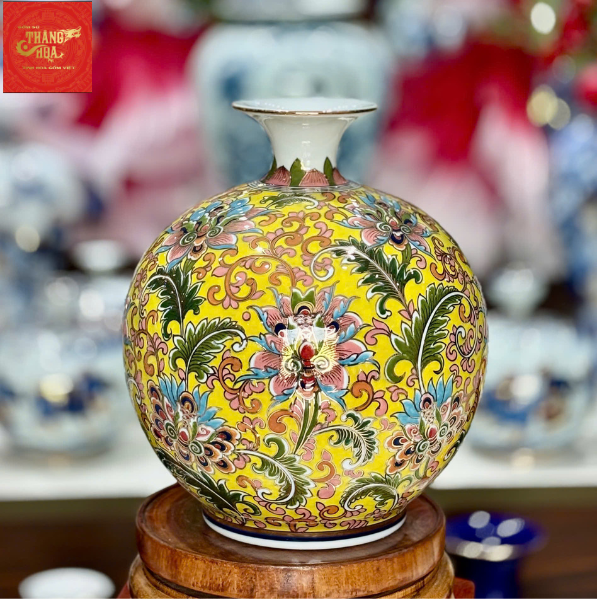 Bình Hút Lộc Vẽ Hoa Dây Vẽ Vàng H35