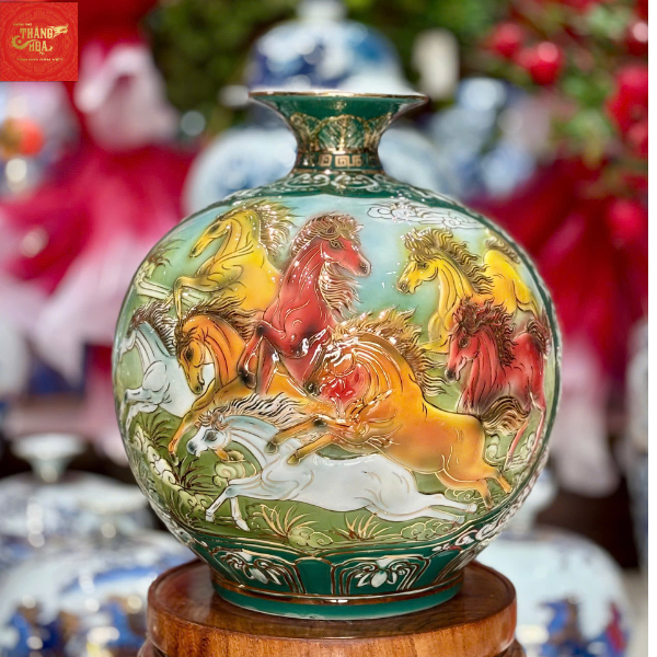 Bình Hút Lộc Họa Tiết Nổi -Thuận Buồm Xuôi gió- Mã Đáo Thành Công-Vẽ Vàng H35