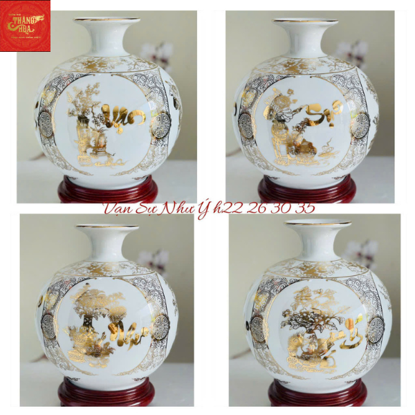 Bình Hút Lộc Vạn Sự Như ý Vẽ Vàng Màu Trắng