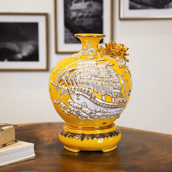 Bình Hút Lộc Thuận Buồm Xuôi Gió Màu Vàng Đắp Nổi Vẽ Vàng