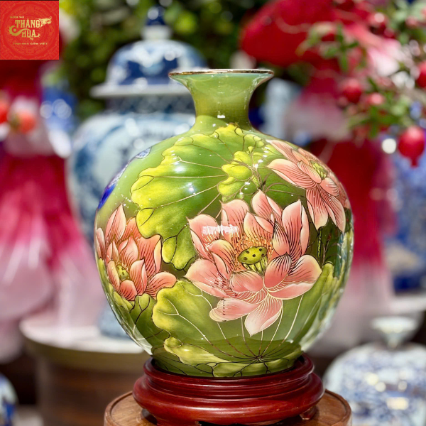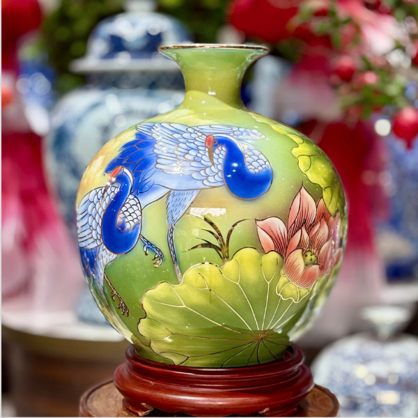 Bình Hút Lộc Sen Hạc Vẽ Vàng H30