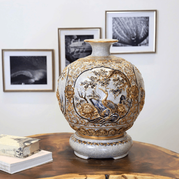 Bình Hút Lộc Tứ Cảnh Men Rạn Vẽ Vàng