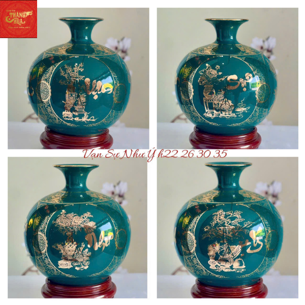 Bình Hút Lộc Vạn Sự Như ý Vẽ Vàng Màu Xanh Lục