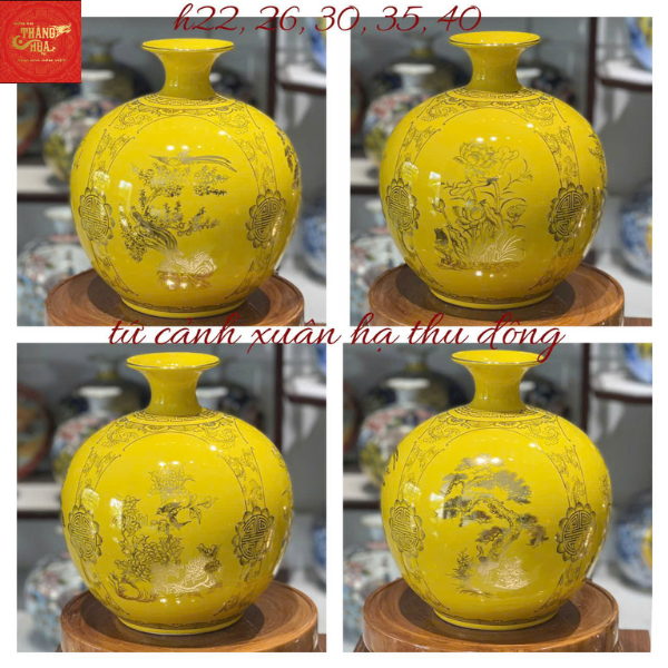 Bình Hút Lộc Tứ Cảnh Vẽ Vàng Màu Vàng
