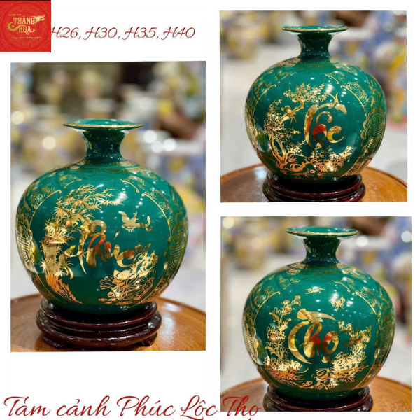 Bình Hút Lộc Phúc Lộc Thọ Vẽ Vàng Màu Xanh Lục
