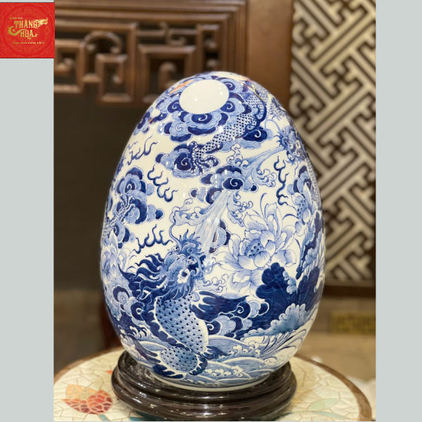 Trứng Tài Lộc – Long Quấn Thủy Men Lam H46