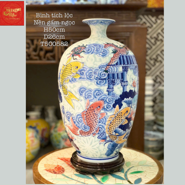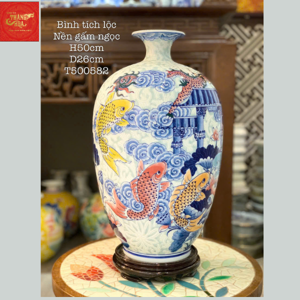 Bình Tích Lộc – Cá Chép Vượt Vũ Môn H50 Nền Gấm Ngọc