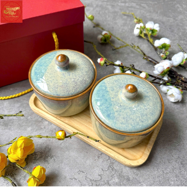 Bộ 2 -Khay mứt tết tròn - men hỏa biến