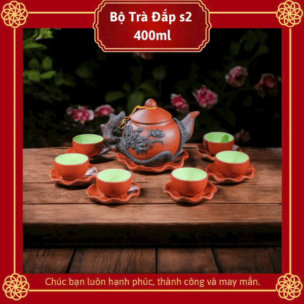 Bộ Ấm Chén Trà Gốm Tử Sa Đắp Nổi 400ml