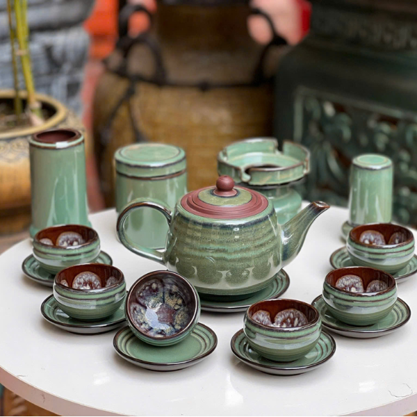 Bộ Ấm Chén Trà Gốm Tử Sa Màu Xanh Ngọc Kèm Phụ Kiện
