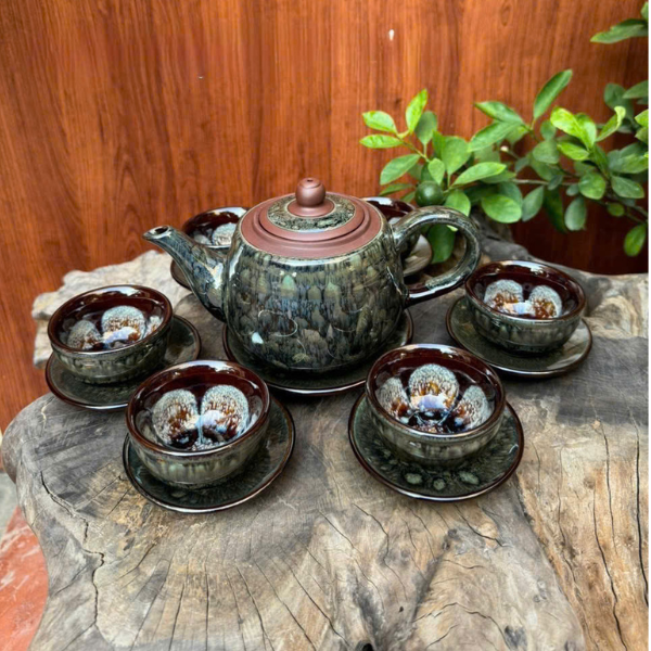 Bộ Ấm Chén Trà Gốm Tử Sa -Men Mã Não
