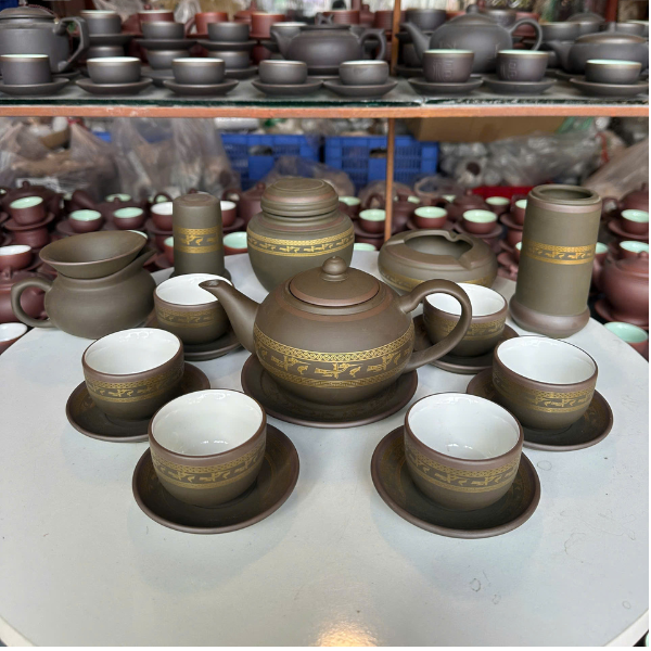 Bộ Ấm Chén Trà Gốm Tử Sa Chim Lạc Kèm Phụ Kiện