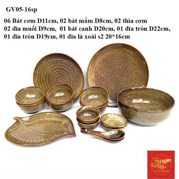 Bộ Đồ ăn Màu Gấm Nâu Bát Tràng