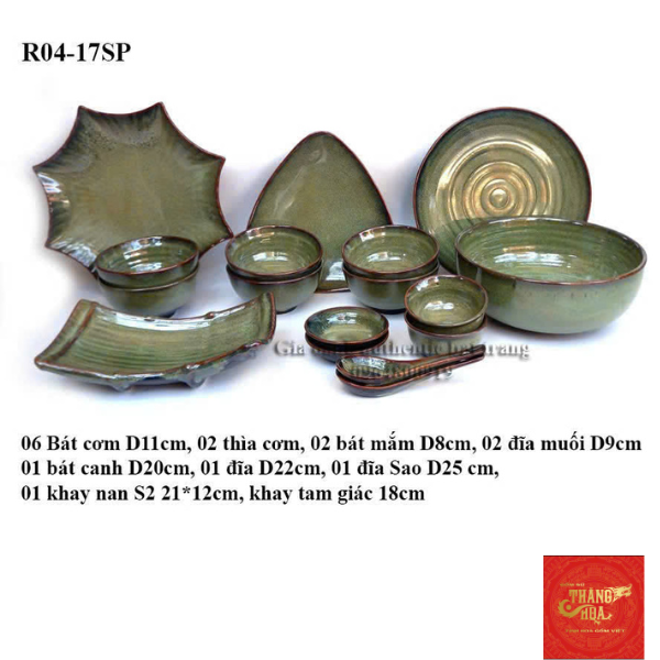 Bộ Đồ ăn Màu Hỏa Biến Xanh Bát Tràng