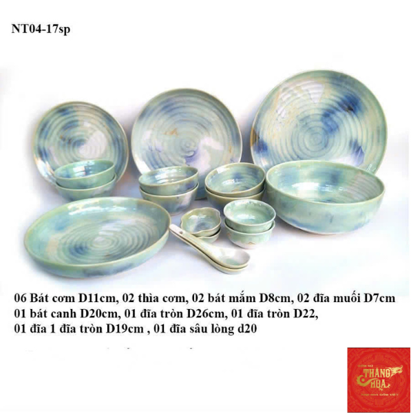 Bộ Đồ ăn Màu Loang Xanh Bát Tràng