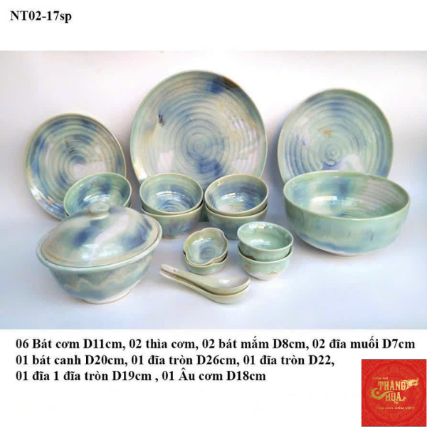 Bộ Đồ ăn Màu Loang Xanh Bát Tràng