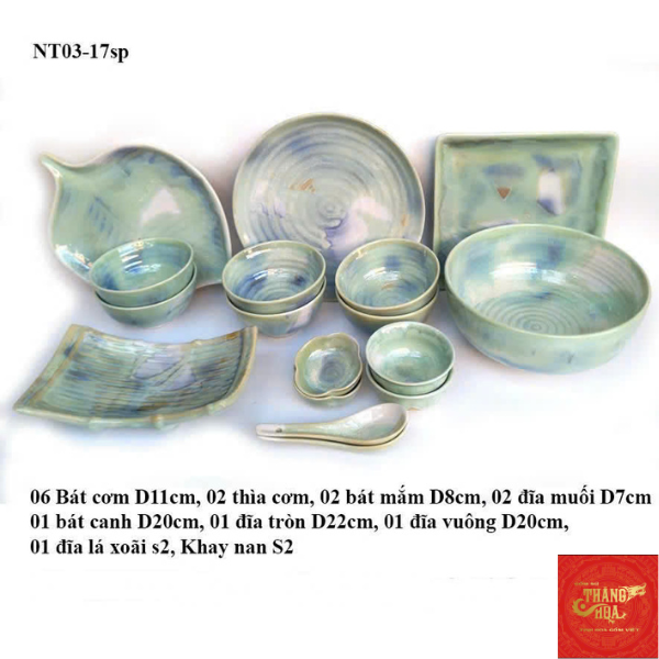 Bộ Đồ ăn Màu Loang Xanh Bát Tràng