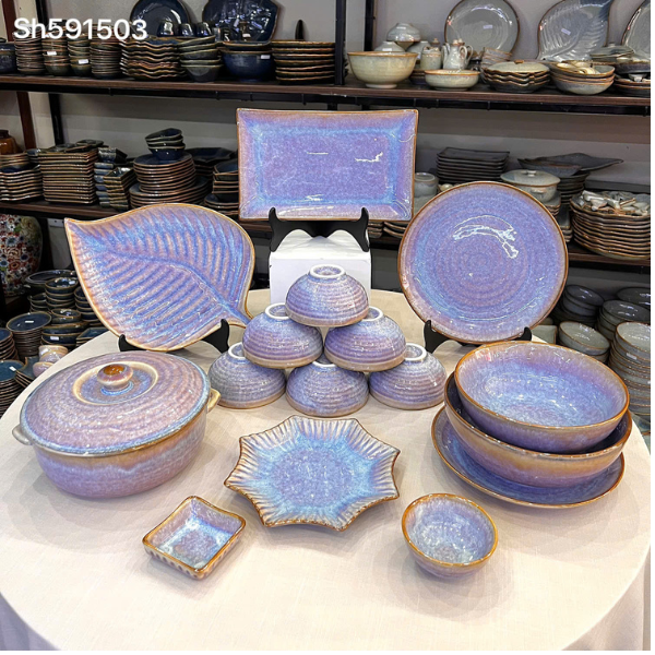 Bộ Đồ ăn San Hô Tím Bát Tràng