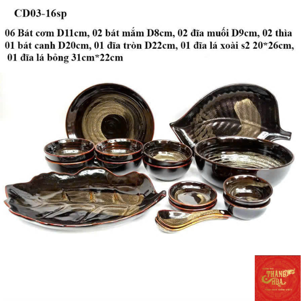 Bộ Đồ ăn Màu Nâu Vàng Bát Tràng