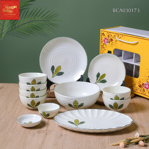 Bộ Đồ Ăn Vẽ Hoa Lá Bát Tràng