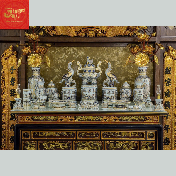 Bộ Đồ Thờ Vẽ Kỹ Men Lam Vẽ Vàng 24K