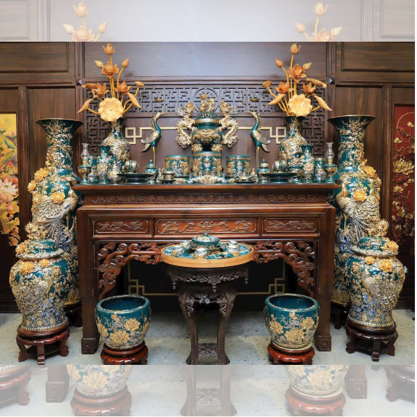 Bộ Đồ Thờ Đắp Nổi Vẽ Vàng Màu Xanh Lục Bảo