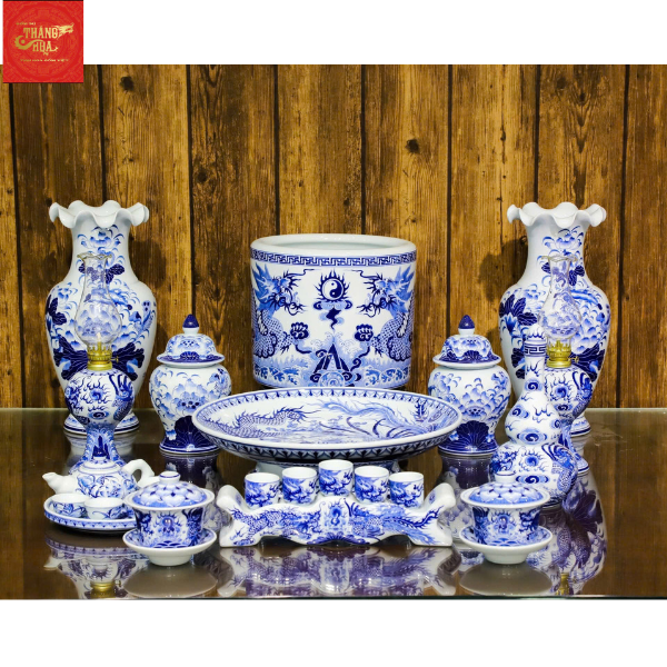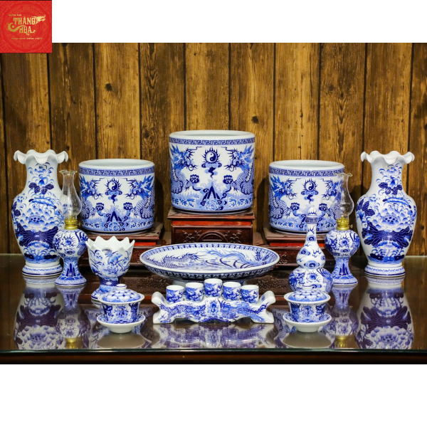 Bộ Đồ Thờ Men Lam Bát Tràng