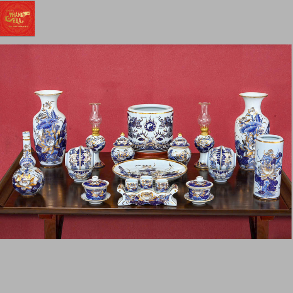 Bộ đồ Thờ Men Lam Vẽ Vàng